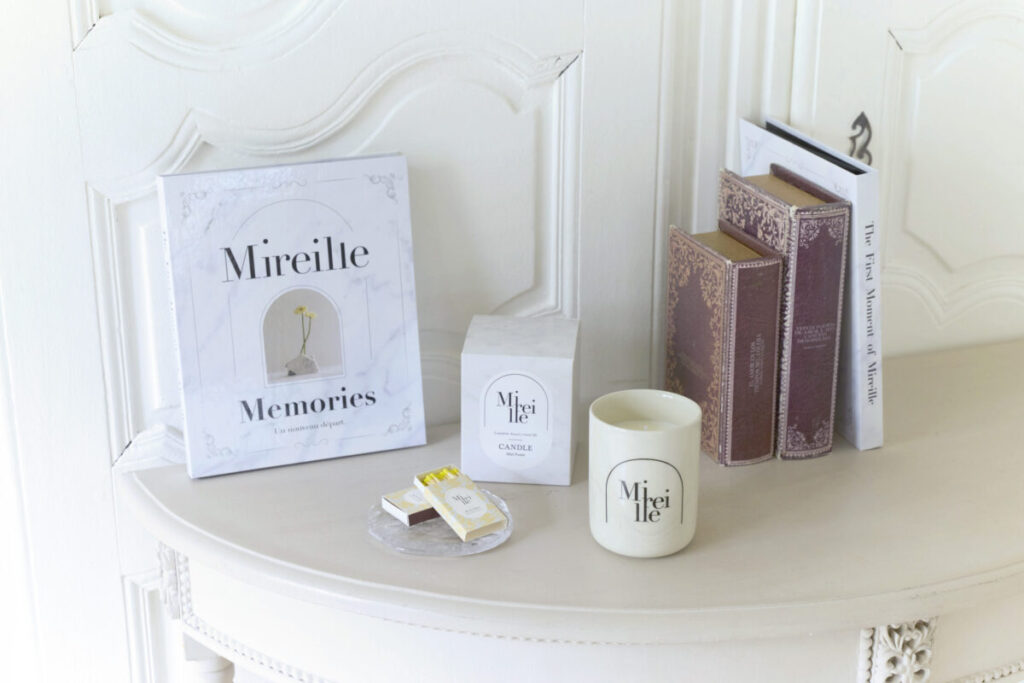 店頭では、キャンドルの試香や予約ができるほか、Mireilleオリジナルグッズが販売される。アイテムは、マッチボックス、トートバッグ、ファーストメモリアルアルバム、フォンタブキーホルダー、A4クリアファイル 2枚組、B4厚紙ポスターの全6点。