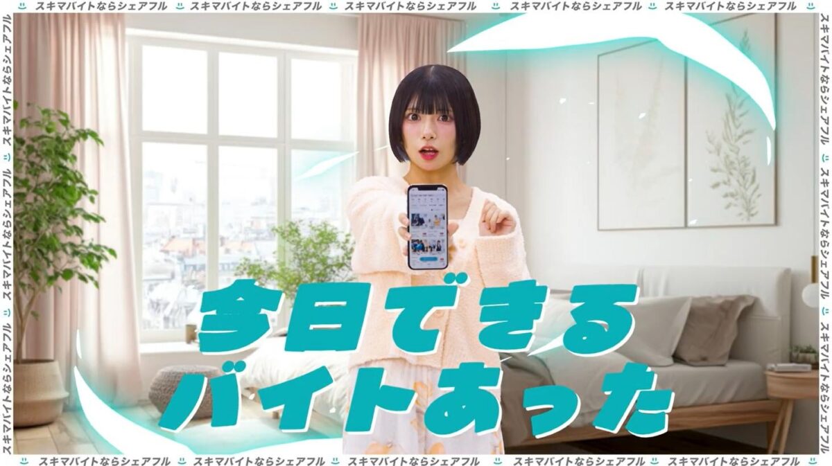 “スキマバイトなら、シェアフル!”というキャッチーなメッセージを通じて、面接・履歴書不要、アプリ1つで仕事が見つかる魅力を明るく伝えている。
