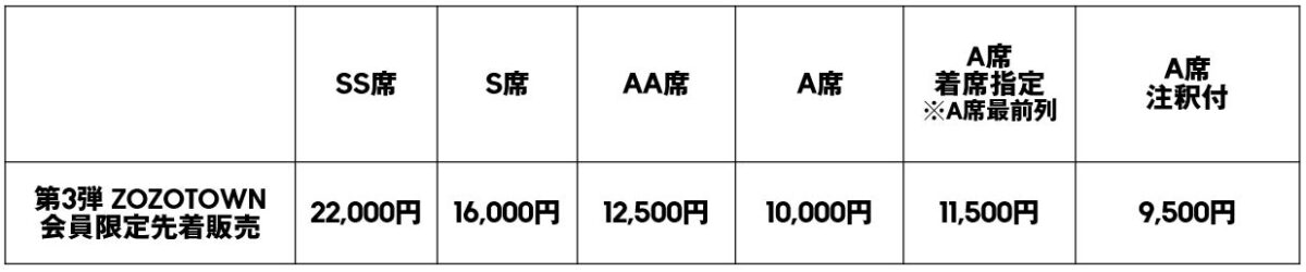 ※座席は全席指定です。チケット購入および抽選販売についての詳細はZOZOTOWN特設サイトをご確認ください。