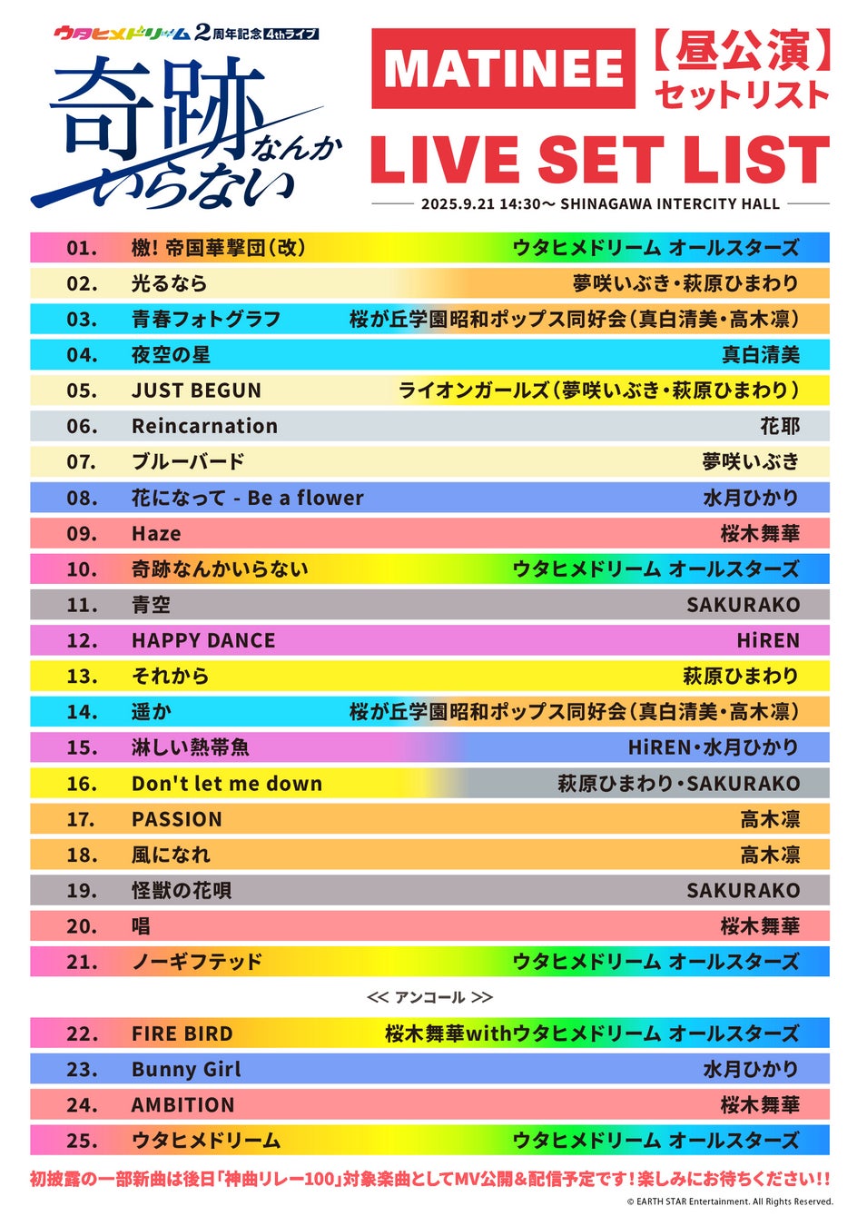 そして、10月よりTVアニメの放送がスタートする『無職の英雄 〜別にスキルなんか要らなかったんだが〜』とのタイアップを記念したスペシャルコーナーでは、ウタヒメドリーム オールスターズとして本作のエンディングテーマ「奇跡なんかいらない」で息の揃った渾身のステージを披露。